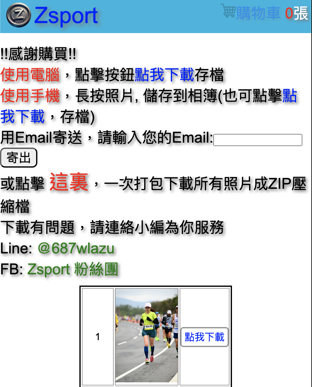 完成付款後,可直接在網頁下載照片,也可以輸入 Email 寄送。